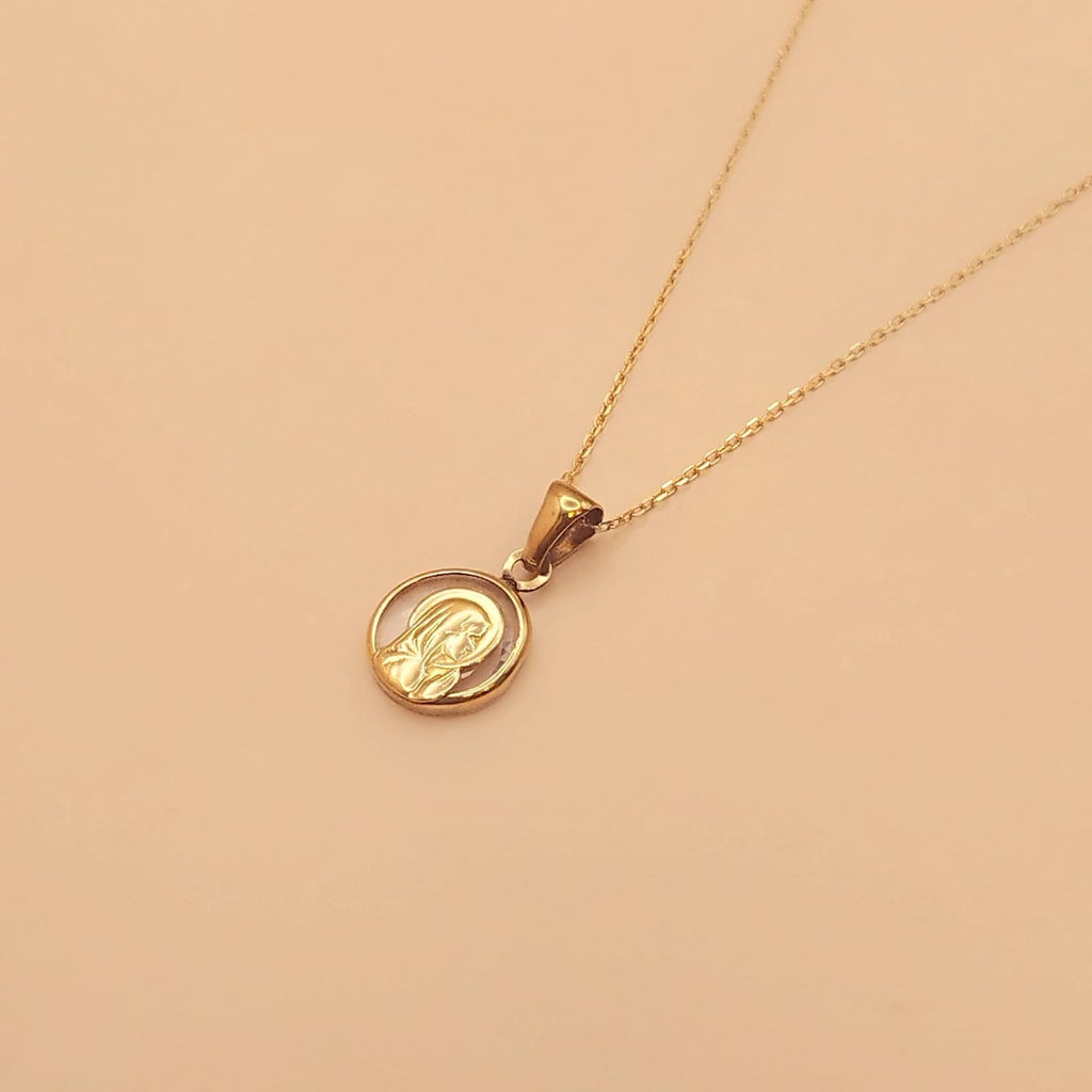 Dije Virgen Niña en Oro 18k con Cristal
